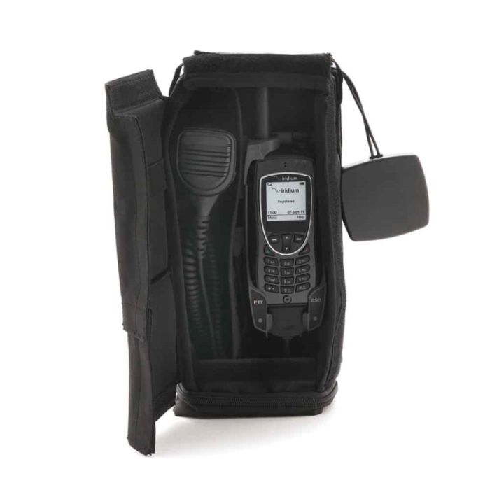 El Bag Dock tiene una batería integrada que puede extender el uso del Iridium 9575 hasta 12-19 horas (depende del uso). También se incluye con el bag dock un micrófono/altavoz de puño diseñado para mejorar la efectividad de su comunicación PTT. Incluido con el kit hay una entrada de audio auxiliar si necesita integrarse en el sistema de sonido del vehículo, o para usar con un altavoz externo.